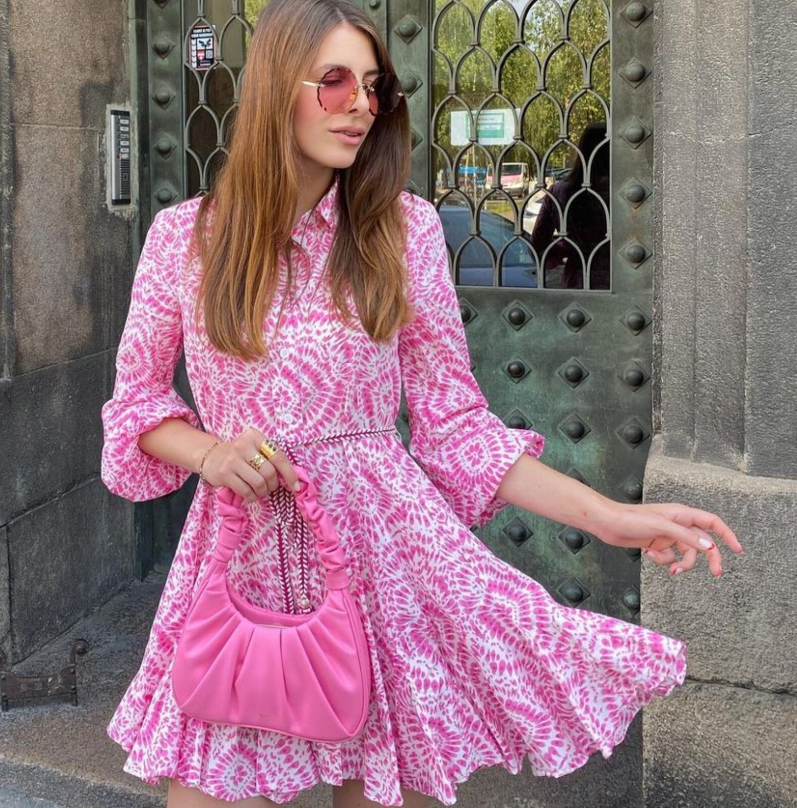 Zara Pink Tie Dye Floral Printed Mini Shirt Dress Belted Voluminous Ruffle Skirt Ebay